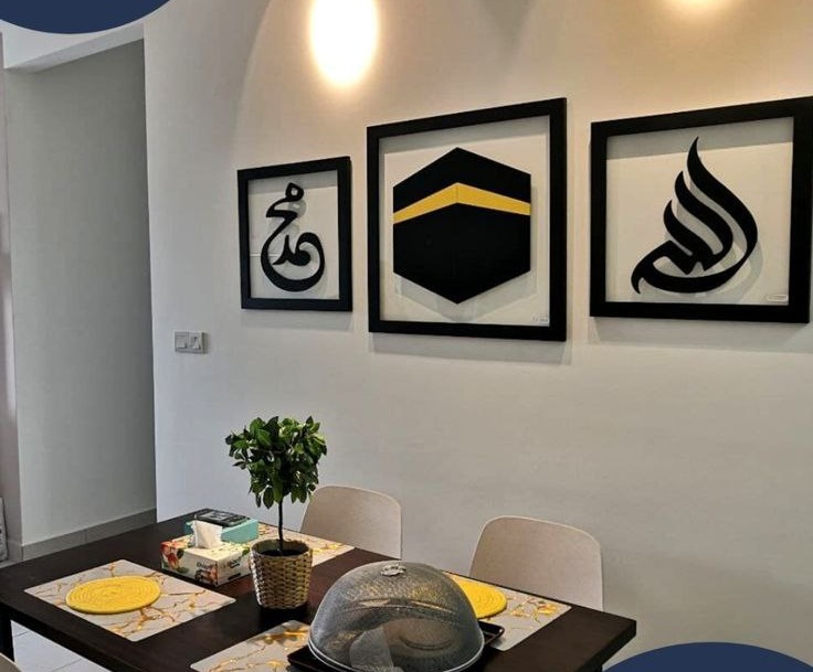 ✨ أضف لمسة روحانية وفخامة إلى جدران منزلك مع لوحتَي الأكريليك "الله" و"محمد" و"مكة" بتصميم عربي أنيق.